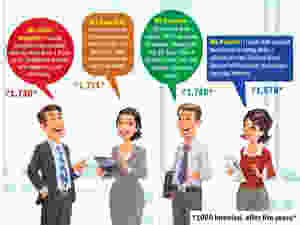 We tested it and saw the returns after five years. We took four investors. All of them had Rs 1000 to invest in total. Mr. Ticker (see image) invested every time when the market fell by more than 1.9 percent. On the other hand, Ms. Busy Bee missed the top 10 days (when the Sensex fell the most). She invested during the rest of the down days. Similarly, Mr. Outsider and Ms. Passive missed to invest during the top 20 and 30 days, respectively, when the market fell the most. Surprisingly, their cumulative investments of Rs 1,000 after five years yielded somewhat similar results.